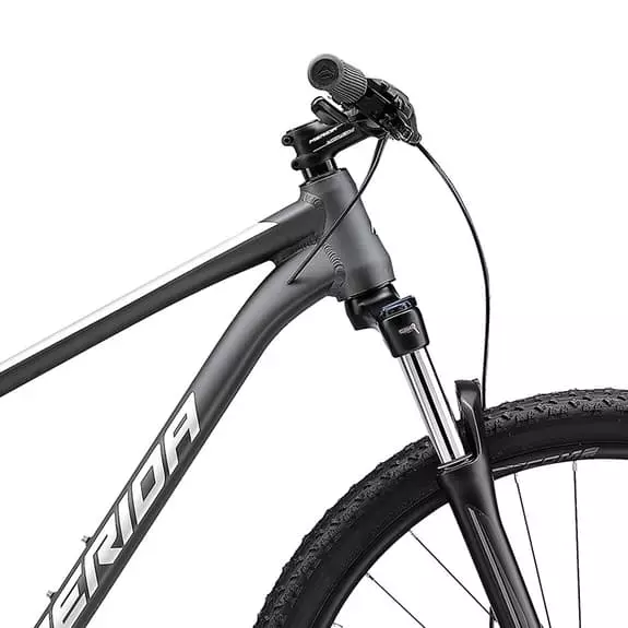 La bicicletta MTB Merida Big Nine 20 ha una geometria più rilassata che è molto più comoda e permette di fare giri più lunghi, oltre a migliorare il controllo e la stabilità. Se vuoi usarla anche come bicicletta per tutti i giorni, puoi approfittare della possibilità di montare parafanghi e portapacchi. Lo sterzo di forma conica è stato una prerogativa delle bici da corsa fino a poco tempo fa. L’idea alla base di questo concetto è quella di aumentare la rigidità dello sterzo, che è uno dei punti più critici nelle prestazioni di una bici, senza penalizzare il peso complessivo della stessa. Il diametro maggiore del cuscinetto inferiore rispetto a quello superiore dà allo sterzo una forma conica, che aumenta considerevolmente la rigidità in questo punto. Il telaio Big nine fa uso del passaggio interno dei cavi per migliorare l’estetica della bicicletta e ridurre la manutenzione, poiché i cavi sono meno soggetti a usura e strappi, essendo instradati all’interno del telaio. L’unico che hanno tenuto all’esterno del telaio è stato il freno posteriore, pensando che la manutenzione e lo spurgo del freno sia un compito più costoso se la custodia va all’interno.